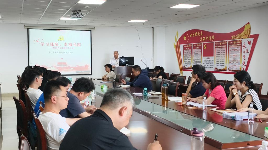 在文科楼1104室召开5月份教职工大会,会议由院长姜学勤主持。