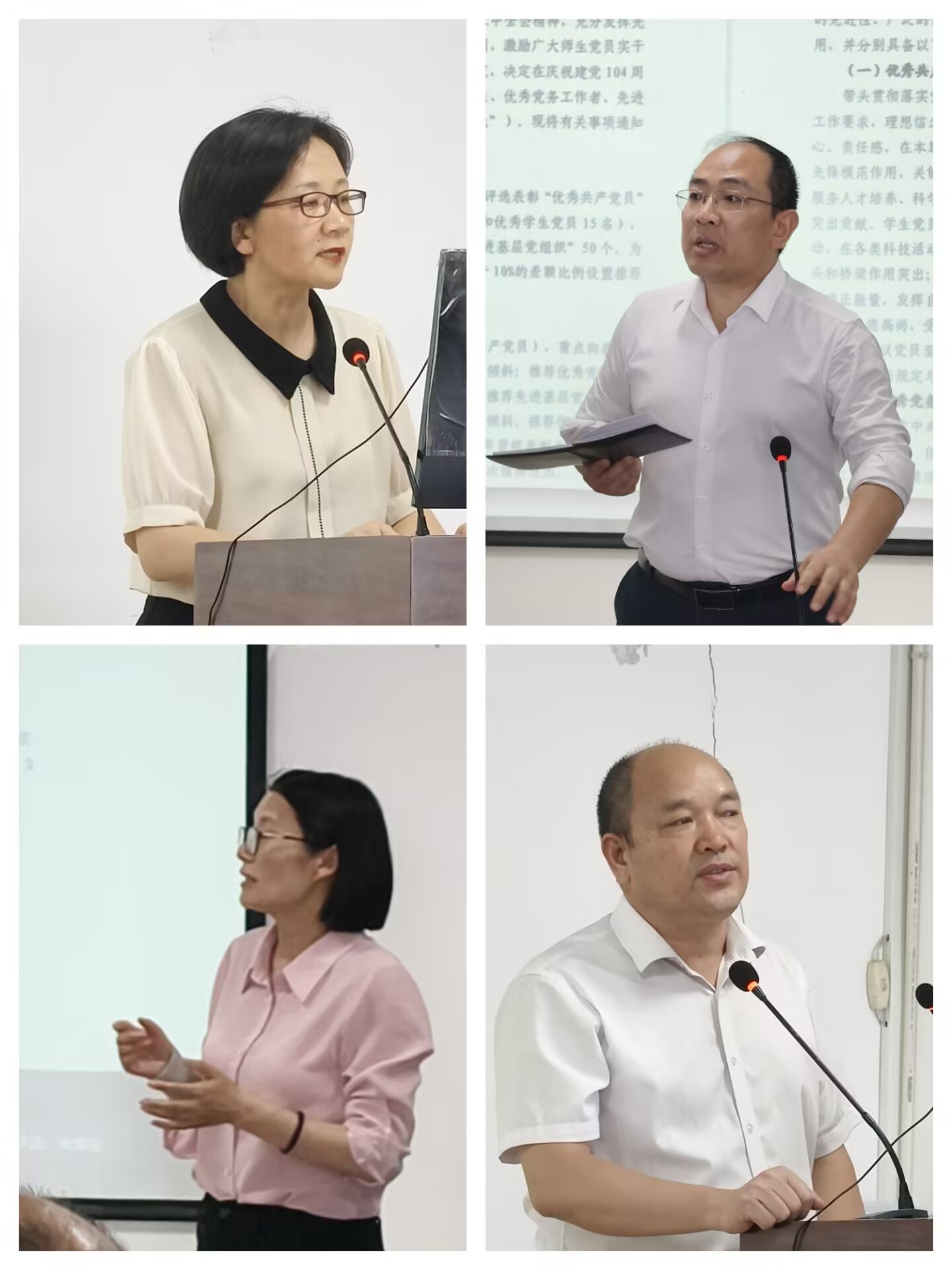 涂江波副院长强调了研究生招生宣传、硕士学位论文自查与抽检、学位授予点合格评估抽评等重点工作,张莉副院长通报了本科生毕业论文答辩、课堂管理、课程思政建设、思政课教学展示等工作。会上还就毕业生离校、本科生招生与就业等工作进行了安排。