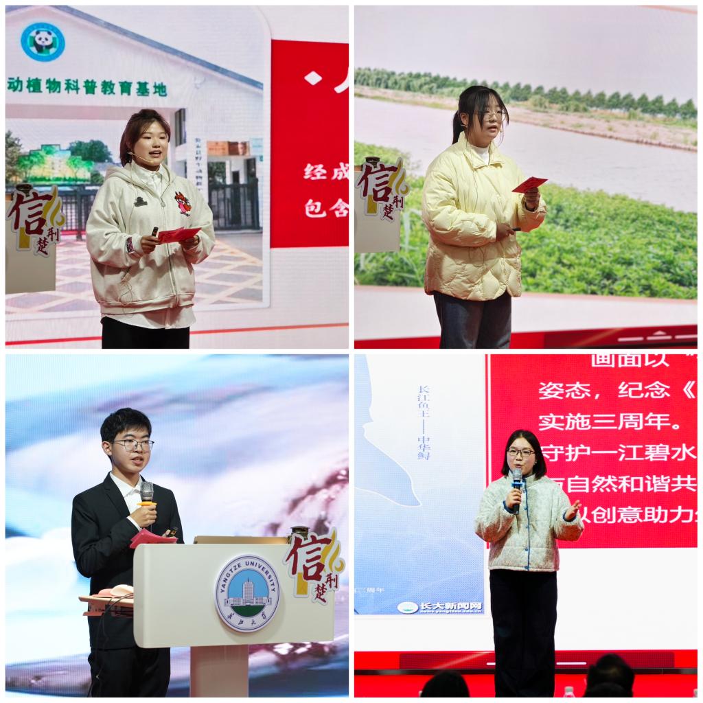 学生袁田以“一条鱼的故事”为题,讲述了长大青年以实际行动助力生态保护的青春故事,表达了期盼长江生态持续向好、人与自然和谐共生的美好愿景。
