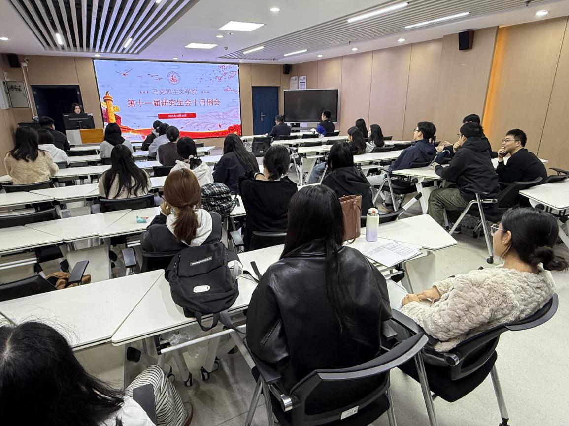 党委副书记竺正海、辅导员邓鹏以及第十一届研究生会全体成员参加会议。本次会议由学科思政QZ251班学生黄琳雯主持。